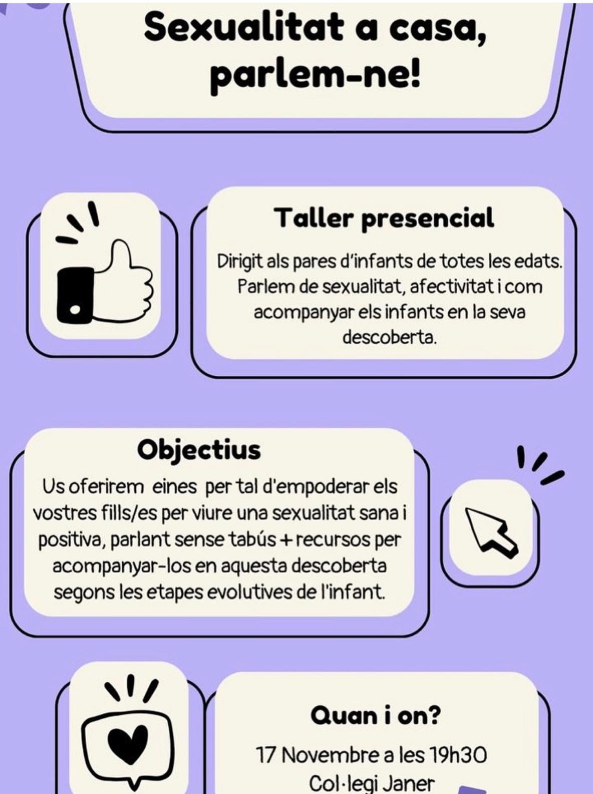 El passat 17 de novembre, al Col·legi Janer, vam tenir el privilegi d’assistir al taller presencial ofert per les professionals del Criand, una proposta valenta i necessària que va obrir espais de conversa sobre sexualitat, afectivitat i criança.